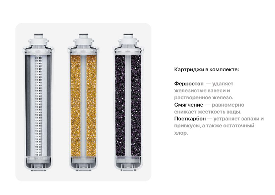 1 ступень — картридж Ферростоп для фильтра БАРЬЕР ЭКСПЕРТ. Содержит специальный многослойный материал, эффективно удаляющий железо как в растворенной, так и нерастворенной форме. Финишный слой препятствует сбросу отфильтрованного железа в чистую воду.