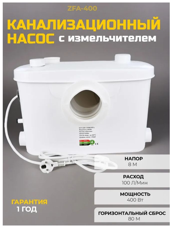Насос канализационный бытовой ZFA-400 c режущим механизмом