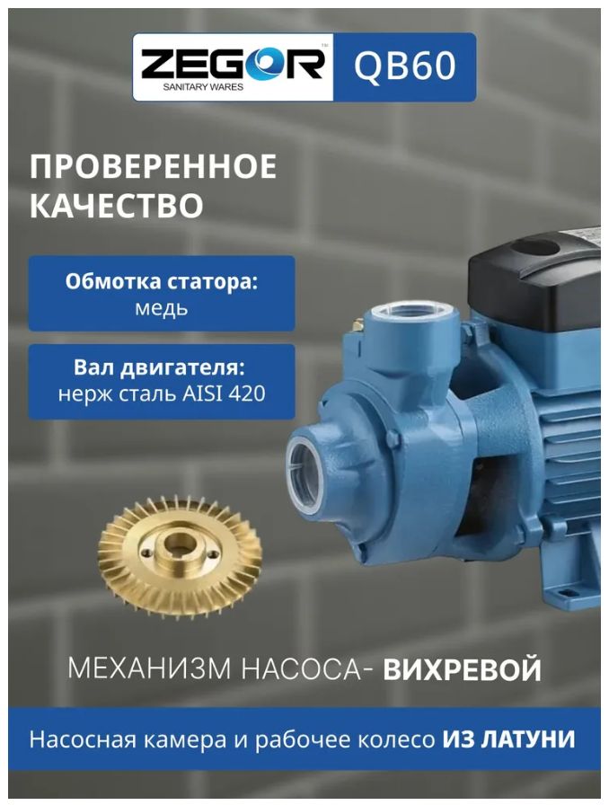 Подходит как для сезонного, так и для постоянного применения, насос поверхностный QB60 ZEGOR обеспечит вам бесперебойное снабжение водой и упростит множество садовых задач. Инвестиции в этот насос — это вклад в комфортное и продуктивное времяпрепровождение на свежем воздухе.