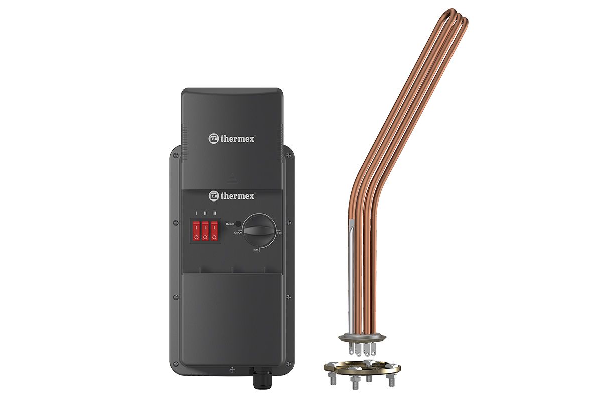 Панель управления THERMEX в сборе с тэном 6 кВт подходит к накопительным и косвенным водонагревателям с фланцем 64 мм.