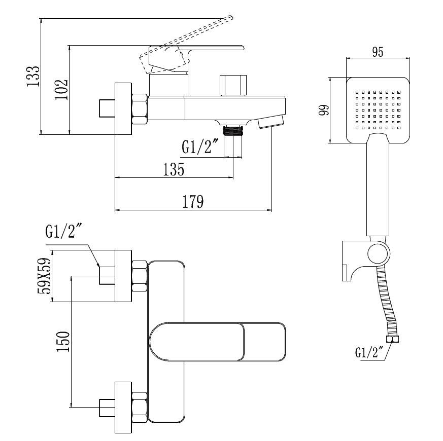 Смеситель для ванны однорычажный SAVOL S-600703, латунь